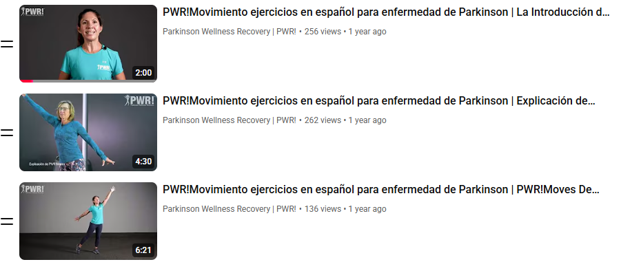 Did you know? All PWR!Moves videos are available in Spanish on YouTube, expanding access to evidence-based movement for people living with Parkinson’s disease. Watch, move, and share with our Spanish-speaking community. https://www.youtube.com/playlist?list=PLsRmTAYV0uGy2ggz-RwcSwD2S1880BOy0