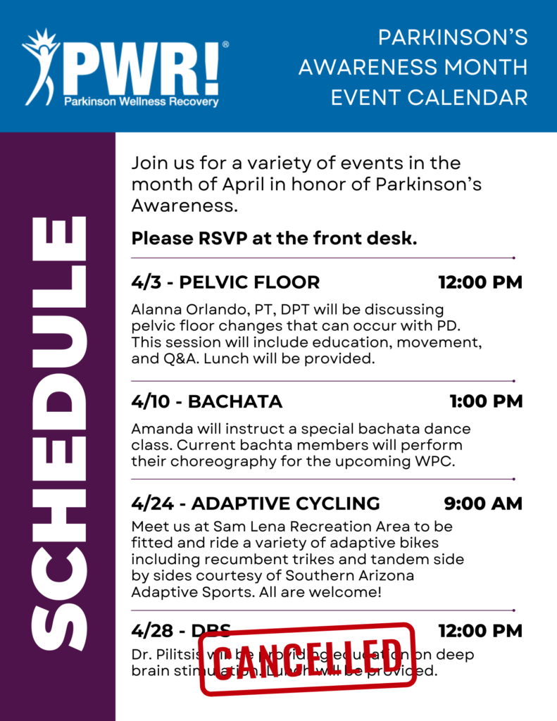 Did you know Arizona Gives Day is Tuesday, April 7? Help kick-off Parkinson’s Awareness Month by making a gift to PWR! to support people with Parkinson’s getting better and staying better with exercise. Make your gift at www.pwr4life.org/about/donation to help ensure that more people with PD live their best lives! PWR! is a Qualified Charitable Organization (#22122)…